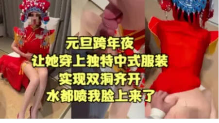 【元旦贺岁】跨年夜让姐姐穿中式服装实现双洞齐插,以大量潮喷变相给大家拜年