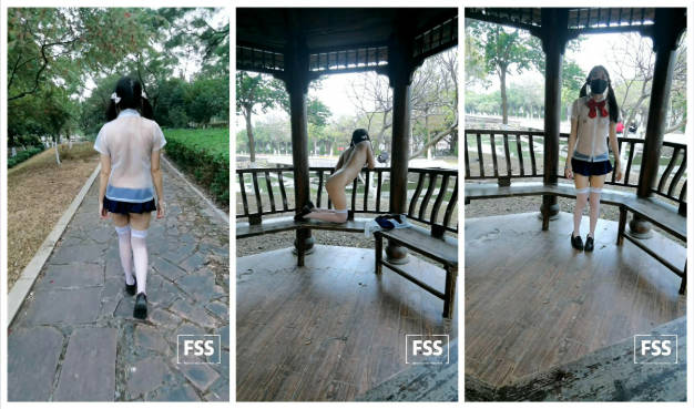 最新知名FSS户外露出网红『雪露儿』公园凉亭学生装脱衣全裸给对面的五位陌生小哥哥看